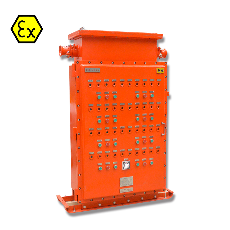 適用范圍適用于具有爆炸性危險氣體(甲烷)和煤塵的礦井中。在交流50Hz,額定工作電壓1140V/660V/380V條件下,能直接控制額定電流在400A以內的鼠籠型三相異步電動機,具有短路、過載、斷相、漏電閉鎖等保護功能,適用于煤礦井下電機的控制。本電控柜主要用于防爆液壓機械閘、輸送機、皮帶機、給料機、破碎機、水泵、風機等設備的控制;有變頻、軟起等驅動方式。